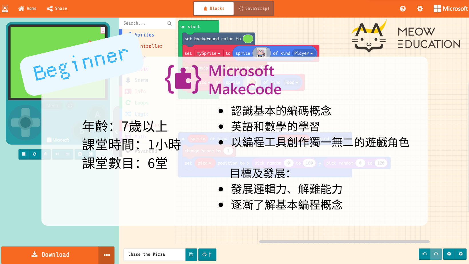 學生不需要任何編碼經驗即可開始學習。無論是新手或是經驗豐富,我們都為每個年齡/編程經驗提供不同課程。 Meow Education主張考慮學生的學習目標和偏好,提供相應課程。
