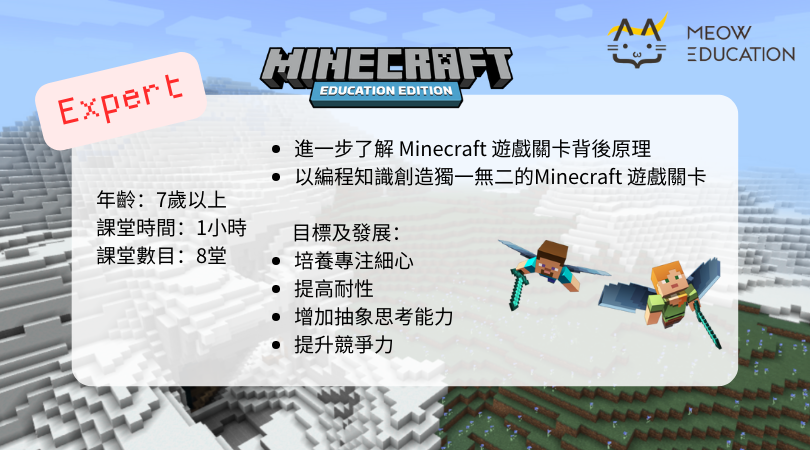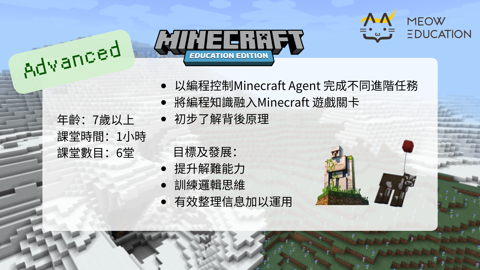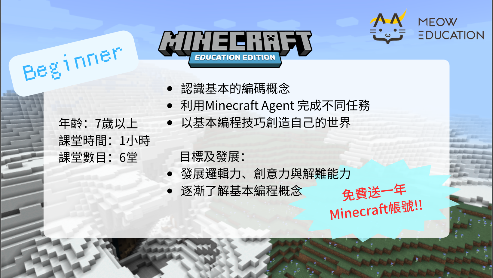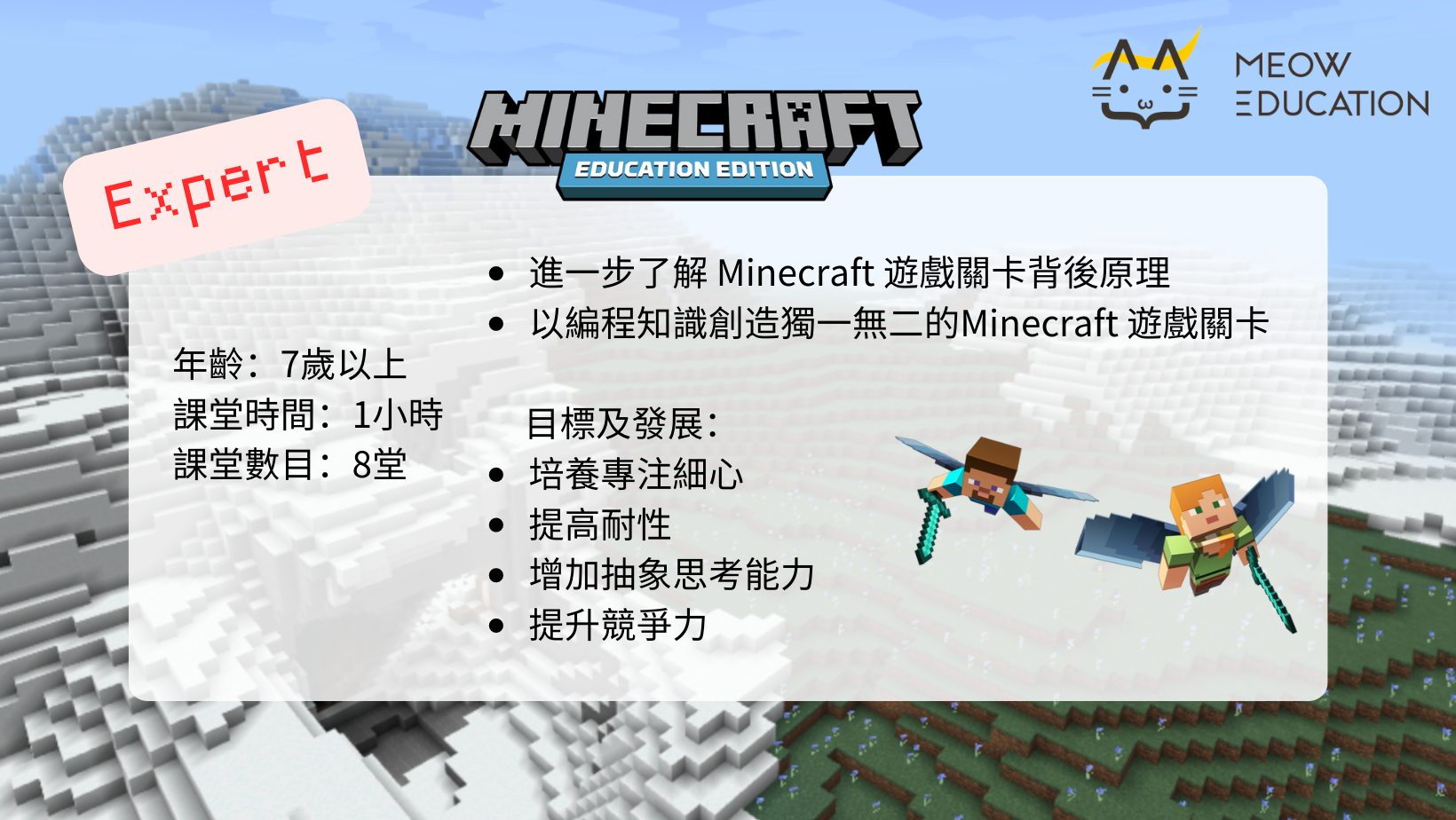 Minecraft : Education Edition 是一個遊戲式平台,透過遊戲建立充滿創意的融合教育學習環境,認識解決各式主題或挑戰的新方法 。提供跨學科的課程和有趣的挑戰,例如數學和環保概念。在互動式遊戲環境中培養關鍵技能,如解決問題、批判性思維、協作和溝通。