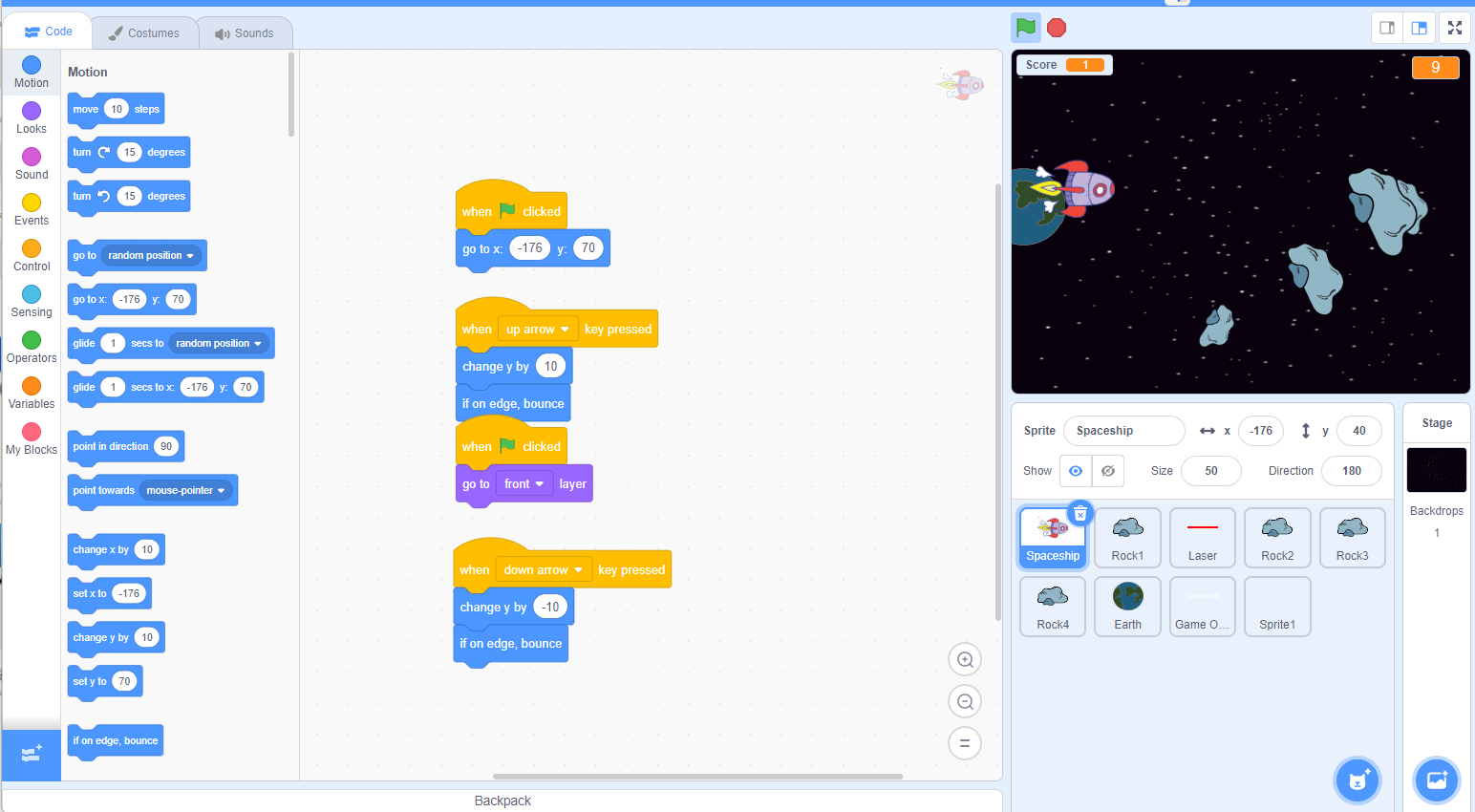 Scratch在Scratch Jr. 的基礎上增加了變數、條件判斷與數學/邏輯運算的學習,可以模擬座標定位與移動、公式繪圖等等這類較抽象的概念。以角色與事件製作動畫與遊戲作品,配合明確的數字和邏輯在作品背後運行,更能精準、完整地呈現孩子的預想。數字、邏輯表達事件其實就是寫程式的核心能力