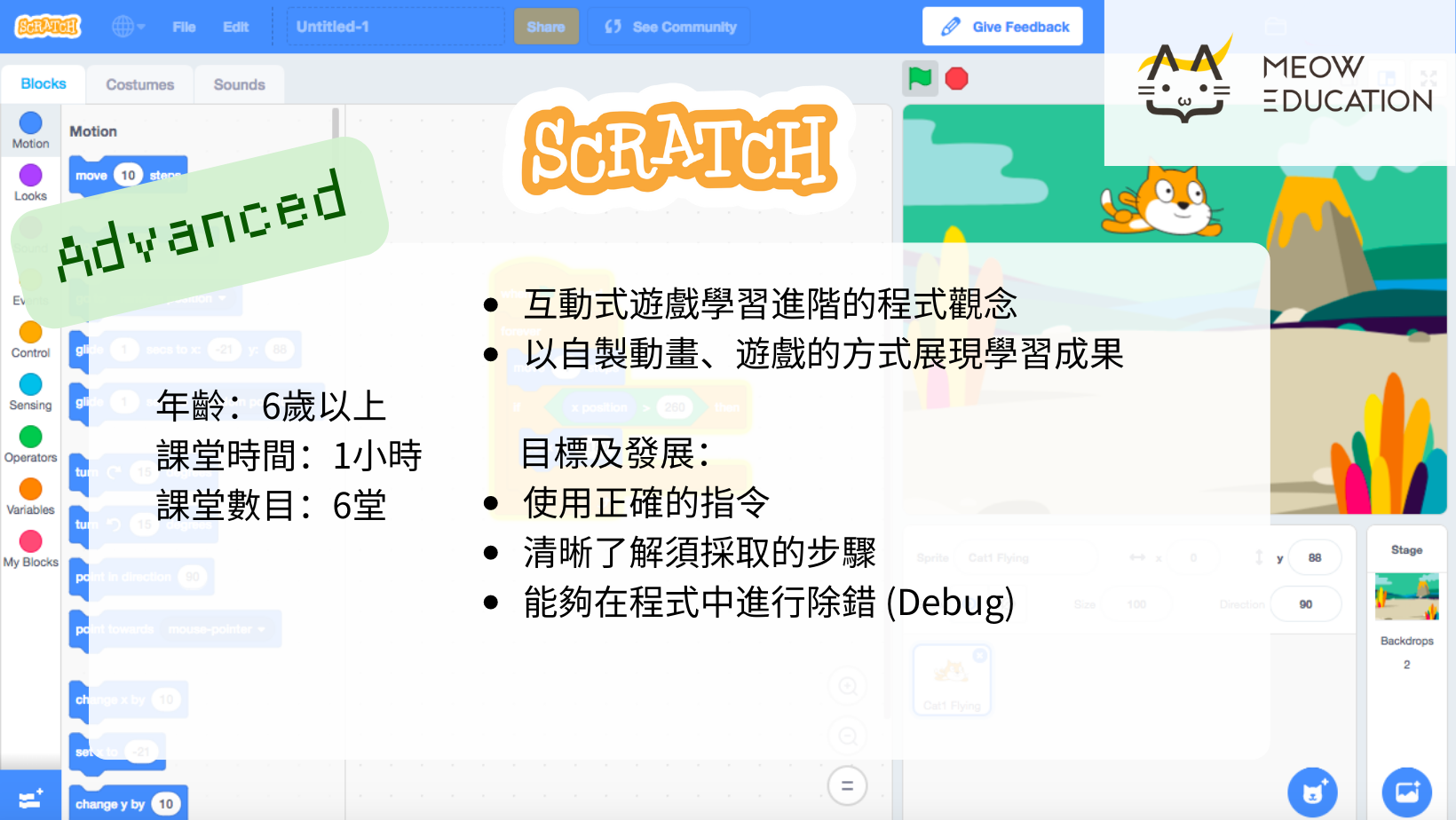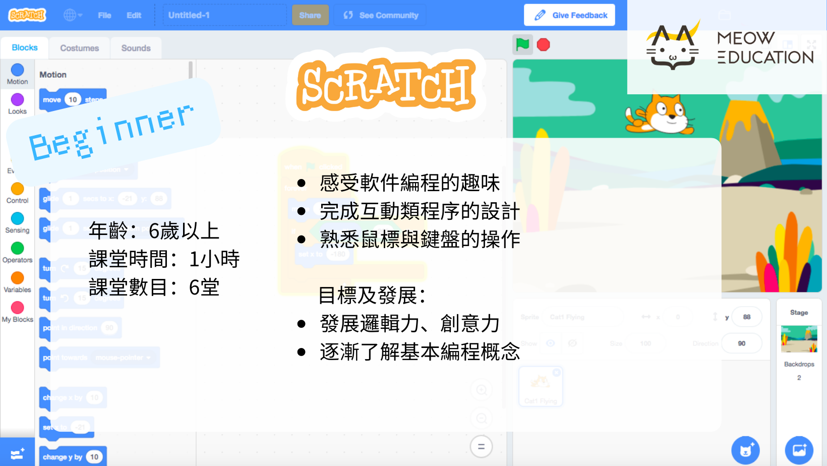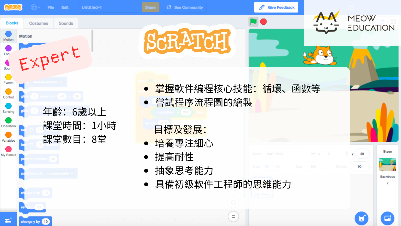 學生不需要任何編碼經驗即可開始學習。無論是新手或是經驗豐富,我們都為每個年齡/編程經驗提供不同課程。 Meow Education主張考慮學生的學習目標和偏好,提供相應課程。